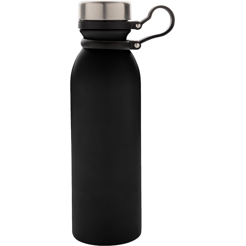 Gourde pouvant également servir de thermos. La gourde est à parois double avec isolation en cuivre pour garder les boissons chaudes pendant 8 heures et froides pendant 24 heures. Le bouchon est fermé avec une bande en silicone qui sert aussi de poignée.