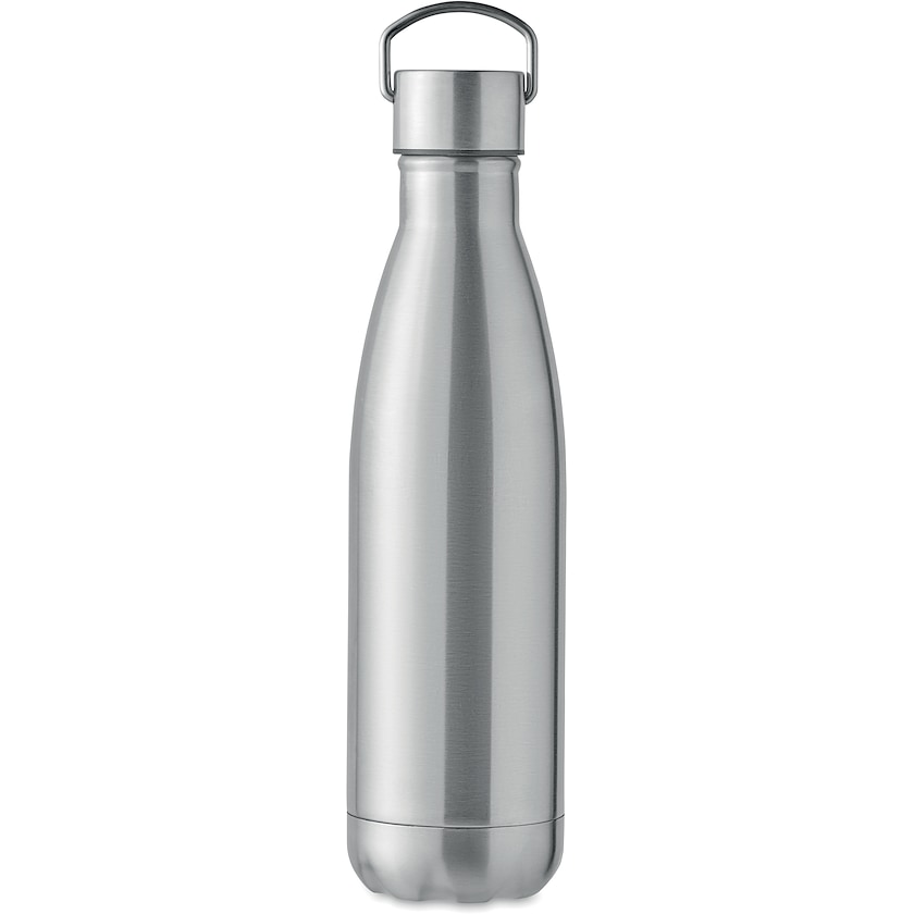 Thermos en acier inoxydable recyclé. Le thermos est composé de 90 % d'acier inoxydable recyclé et de 10 % d'acier inoxydable. Le couvercle est équipé d'une poignée. Sans fuite.
