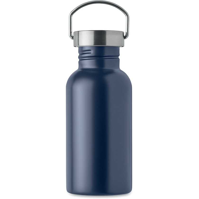 Bouteille d'eau anti-fuite en acier inoxydable recyclé. Lucy a une contenance de 50 cl et possède une paroi simple. Le casier est équipé d'une poignée. Fabriqué à 90 % en acier inoxydable recyclé et à 10 % en acier inoxydable classique.