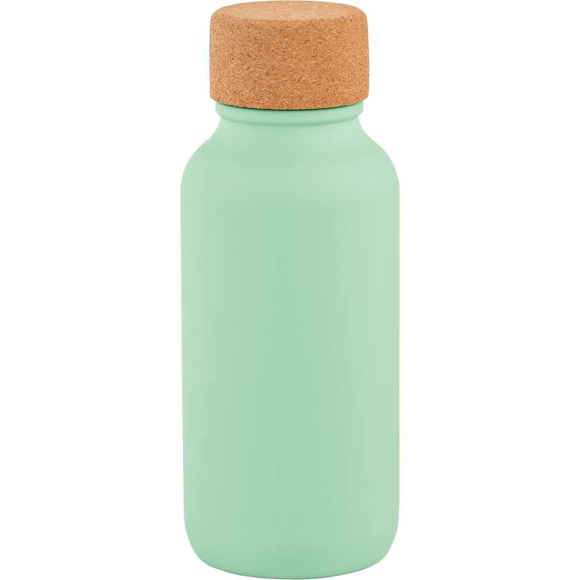 Gourde en acier inoxydable recyclé avec couvercle en liège véritable. La surface est élégamment mate. Une gourde durable fabriquée à partir de matériaux respectueux de l'environnement.