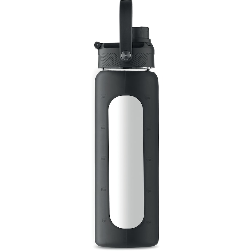 Somptueuse gourde en verre borosilicaté et silicone durables. Pas de fuite. Le bouchon est muni d'une poignée de transport.