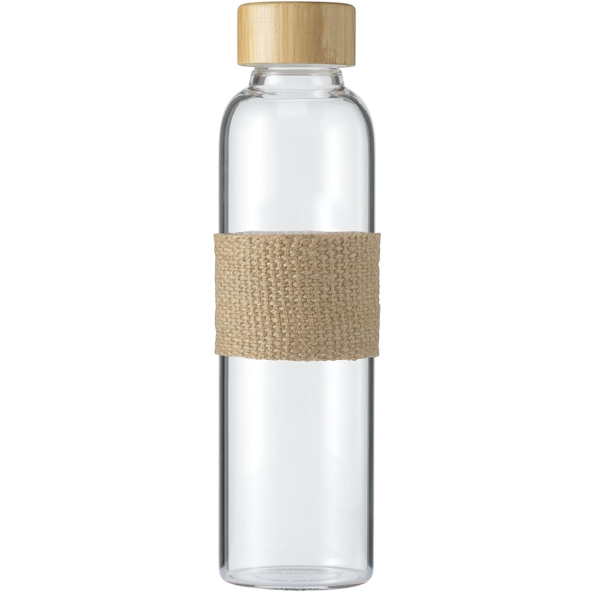 Gourde en verre borosilicaté résistant. Équipée d'un bouchon en bambou, la gourde est entièrement hermétique. La gourde peut être lavée au lave-vaisselle si l'on retire son bouchon. Livrée dans une boîte en carton brune individuelle. Personnalisation en deux couleurs maximum.