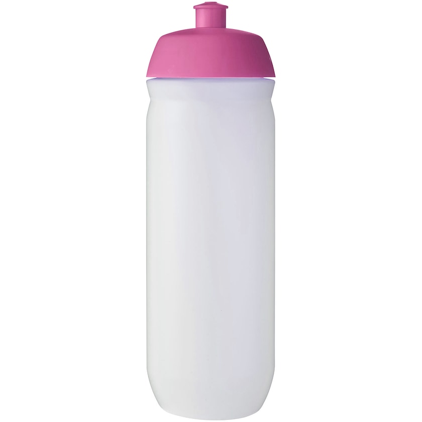 Grande gourde personnalisée compressible. L'Arrow Clear est fabriquée en MDPE, un matériau flexible, ce qui la rend compressible. La gourde possède un corps transparent d'apparence givrée et un bouchon de couleur unie. La gourde est fabriquée en Grande-Bretagne.