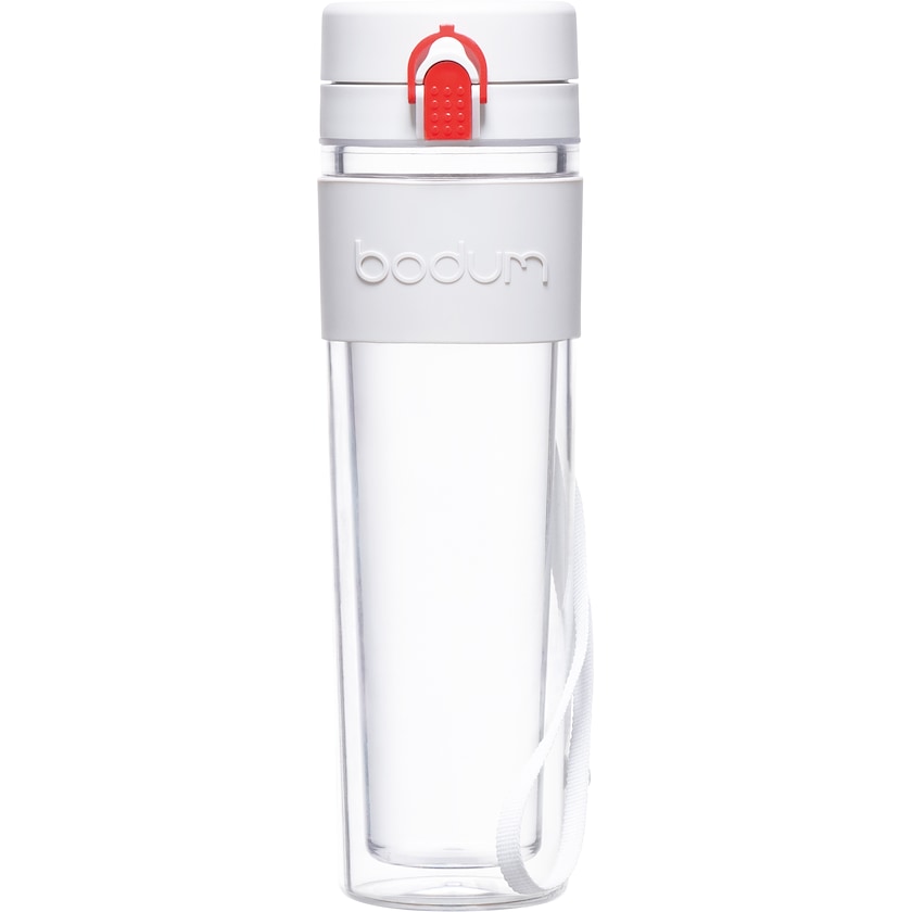 Gourde à paroi double Bodum. L'isolation à paroi double permet de garder les boissons froides plus longtemps. Un appui sur le bouton permet de verrouiller le capuchon de sorte qu'il ne puisse pas être ouvert par accident. Lavable au lave-vaisselle. Personnalisation par impression monochrome uniquement.