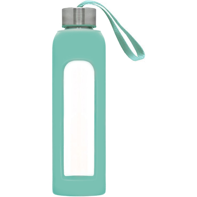Gourde en verre borosilicatée avec revêtement en silicone. La gourde est bien sûr approuvée pour un usage alimentaire. Une belle gourde pratique qui convient pour la plupart des circonstances.