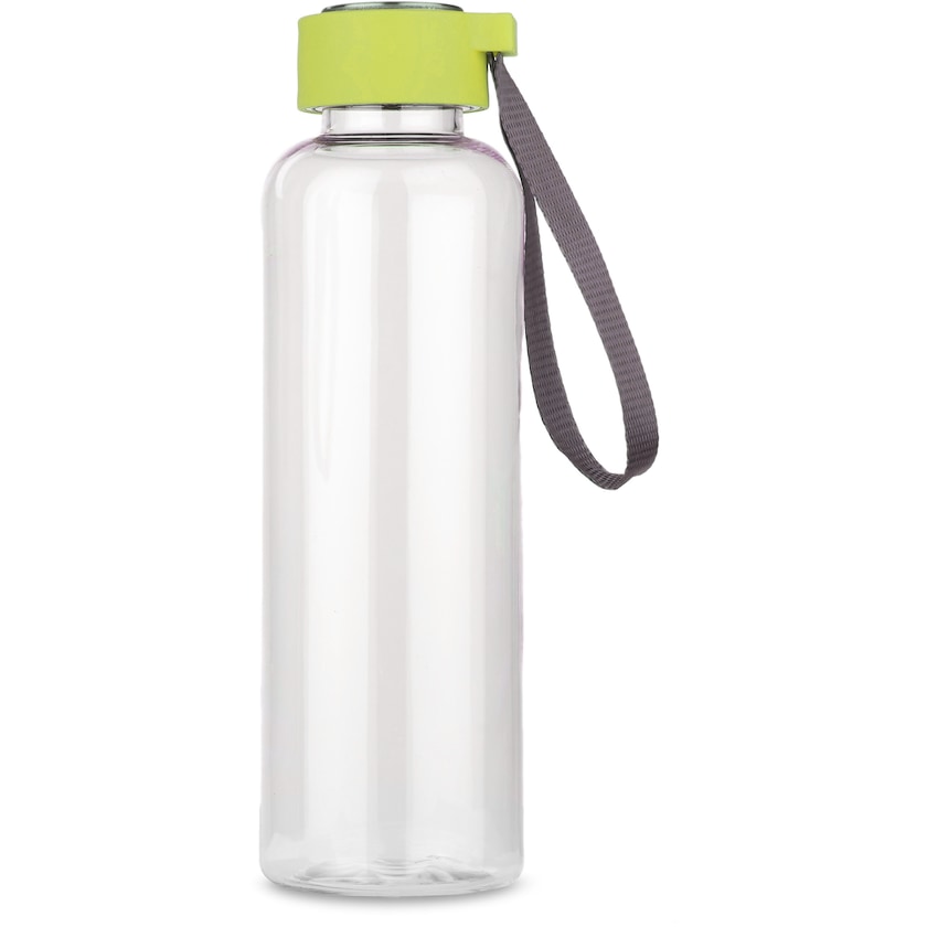 Gourde sans BPA avec bouchon et cordon de poignet intégré. La personnalisation est effectuée par gravure laser sur la partie métallique du couvercle.