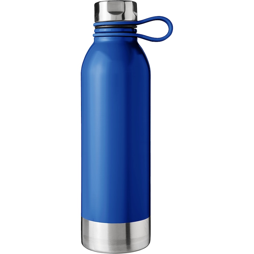 Gourde de sport haute qualité en acier inoxydable. Le bouchon est maintenu par une accroche en silicone. Une gourde de sport haut de gamme de haute qualité. Impression 1 couleur uniquement.