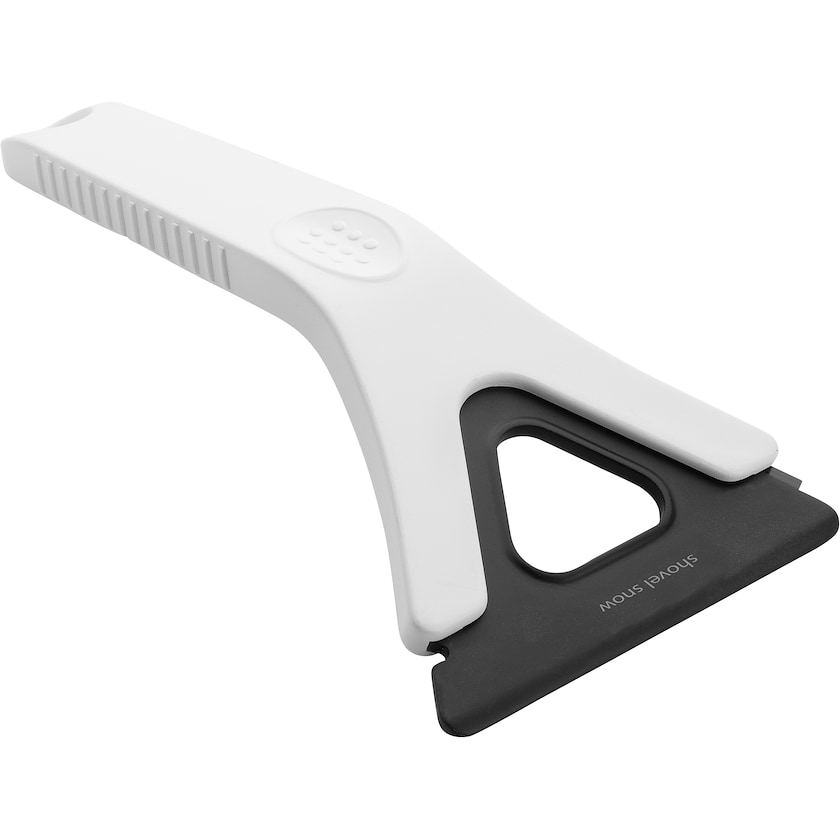 Grattoir à glace 3 en 1 en polystyrène recyclé. Le grattoir est doté d'une tête réglable qui permet de gratter la glace, d'enlever la neige et d'évacuer l'eau.