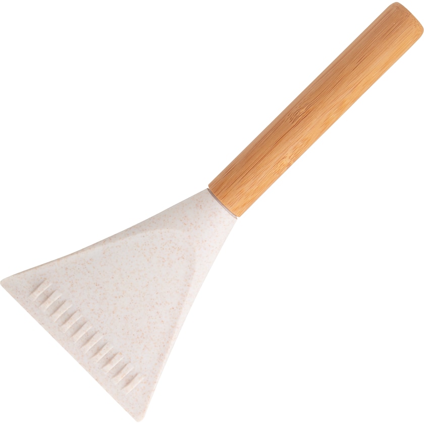 Gratte-givre écologique avec poignée large. La poignée est fabriquée en bambou, le grattoir lui-même dans un mix de paille de blé, un matériau écologique, et de polystyrène.