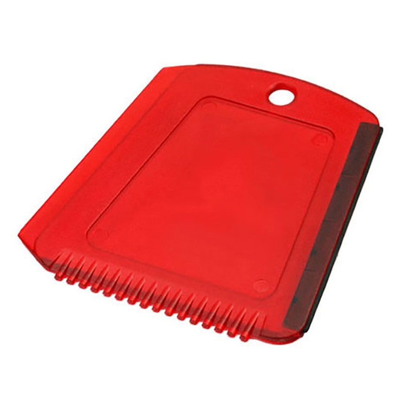 Beau gratte-givre avec bande en caoutchouc. Disponibles en plusieurs couleurs givrées. L'un des côté du gratte-givre possède des picots, l'autre une surface lisse, ce qui permet de retirer différents types de givre.