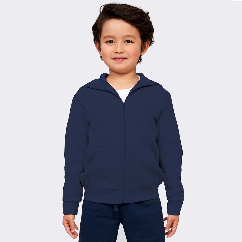 Hoodie avec longue fermeture éclair pour enfant. Le hoodie est fabriqué dans un tissu épais de 260 grammes, composé à 50% de coton et à 50% de polyester. Les tailles sont les suivantes : XL : 6 ans (106 - 116 cm), XXL : 8 ans (118 - 128 cm), 3XL : 10 ans (130 - 140 cm), 4XL : 12 ans (142 - 152 cm).