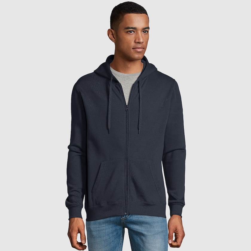 Hoodie personnalisé unisexe avec longue fermeture éclair. Le hoodie est fabriqué à 50% en coton 260 grammes et à 50% en polyester. Disponible à partir de seulement 5 unités.