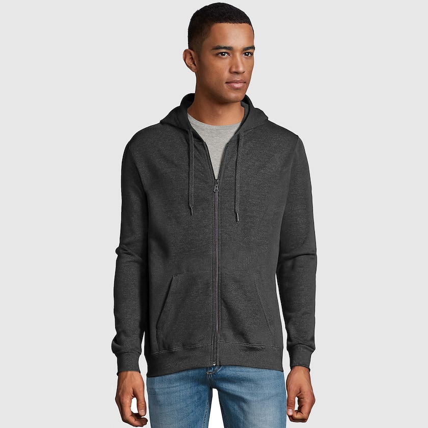 Hoodie personnalisé unisexe avec longue fermeture éclair. Le hoodie est fabriqué à 50% en coton 260 grammes et à 50% en polyester. Disponible à partir de seulement 5 unités.