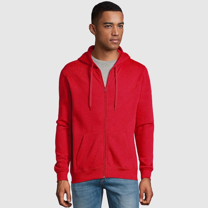 Hoodie personnalisé unisexe avec longue fermeture éclair. Le hoodie est fabriqué à 50% en coton 260 grammes et à 50% en polyester. Disponible à partir de seulement 5 unités.