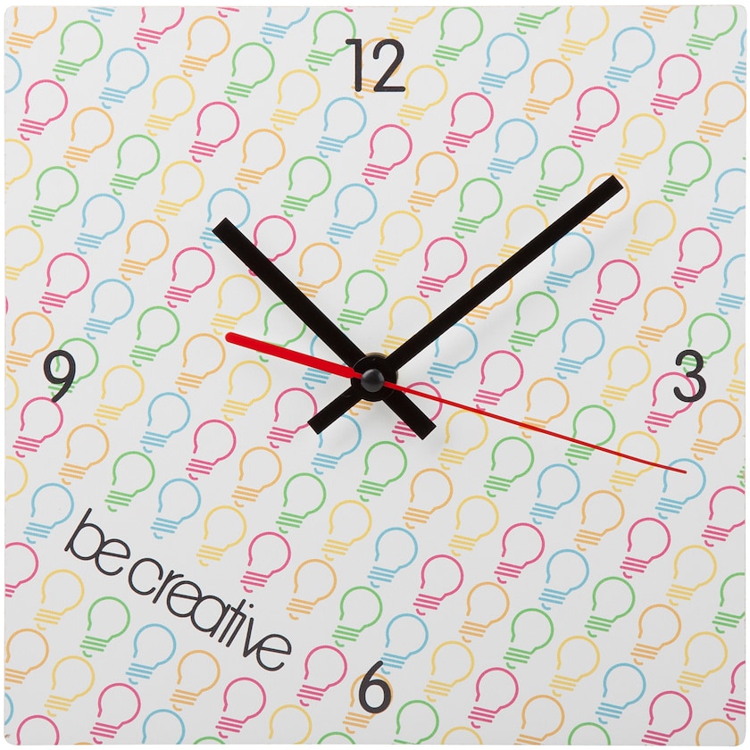 Horloge murale innovante avec impression digitale. La Creative Square est fabriquée en fibres de bois HDF de haute qualité, et son cadran est intégralement personnalisé par impression en quadrichromie suivant vos souhaits. L'horloge est alimentée par une pile AA (non incluse) et est fabriquée dans l'UE.