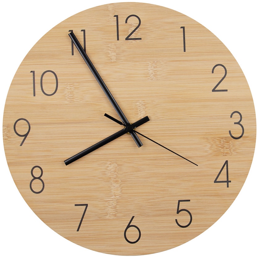 Horloge murale élégante en bambou. Harris a des chiffres grands et clairs, ce qui le rend facile à lire. Le marquage se fait par gravure laser.