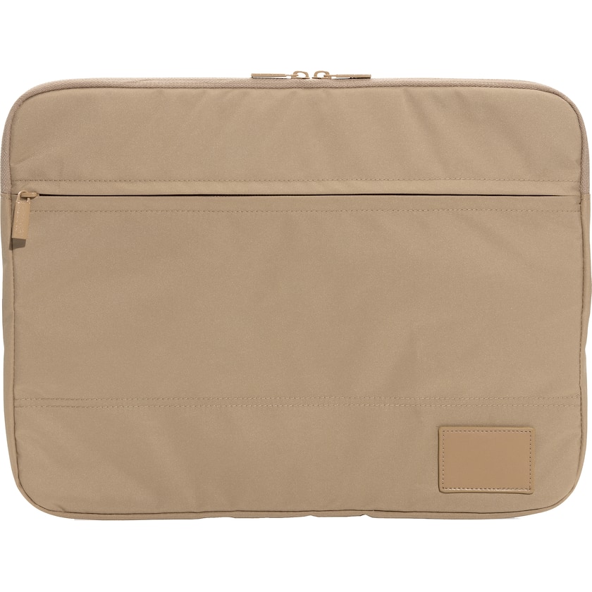 Housse pour ordinateur portable écologique en polyester recyclé. La housse peut protéger un ordinateur portable 14 pouces. Le devant de la housse présente une poche avec fermeture éclair.