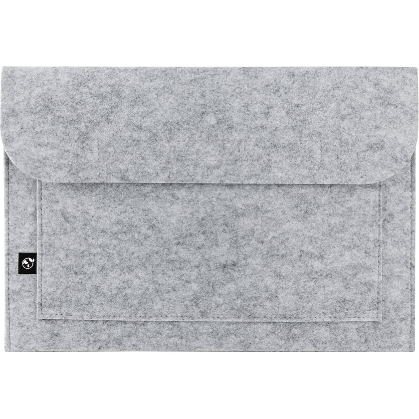 Housse pour ordinateur portable en feutre recyclé. Convient à la plupart des ordinateurs portables de 14 pouces. Le tissu en feutre est fabriqué à partir de rPET (bouteilles en PET recyclées). Une poche velcro est présente à l'avant.