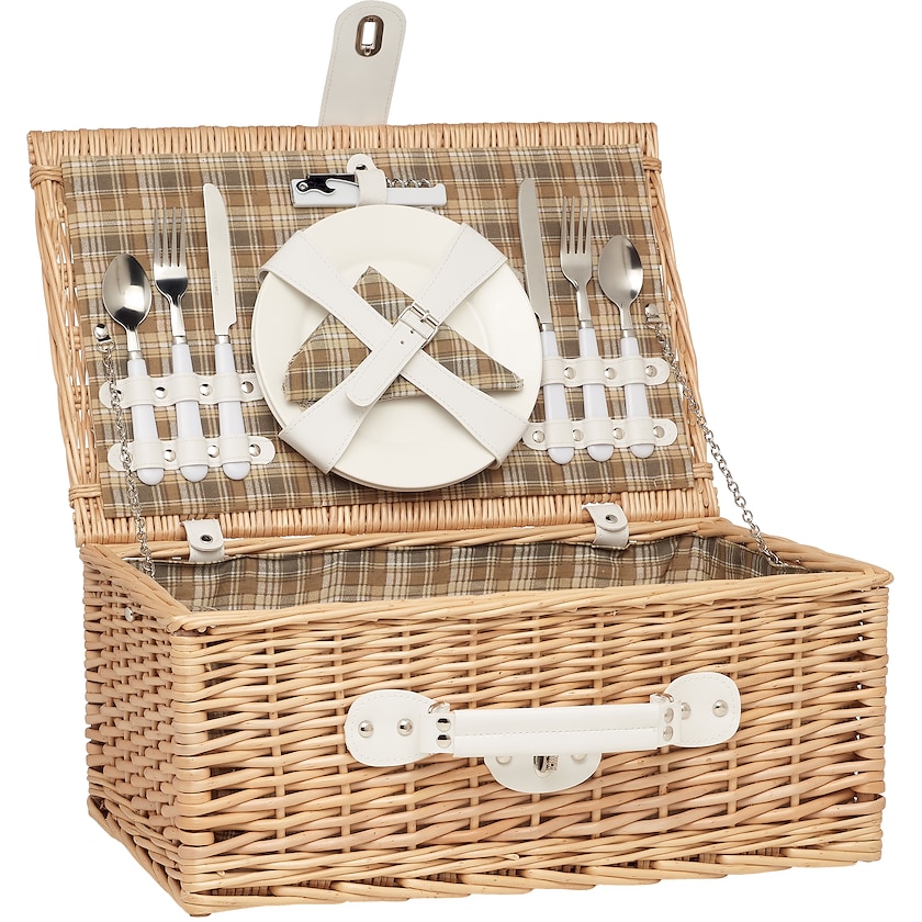Panier de pique-nique contenant tout le nécessaire pour deux. La personnalisation est réalisée sur l'attache du panier. Un joli cadeau estival pour son personnel ou ses clients importants.