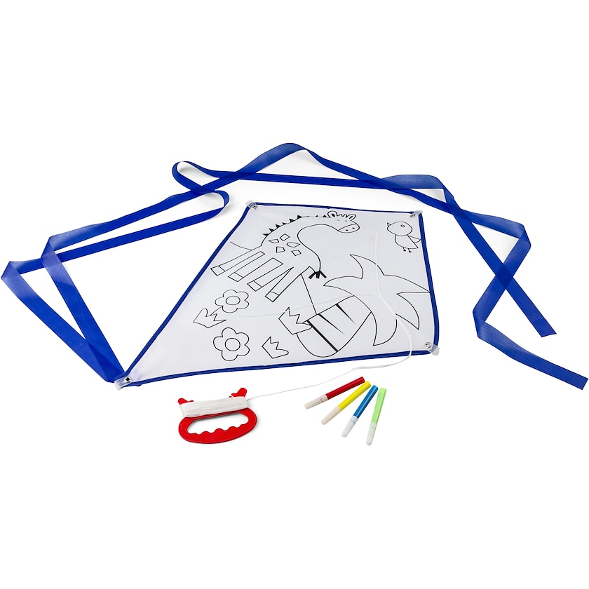 Cert-volant fun que vous pouvez colorier vous-même. Le cerf-volant est livré démonté avec quatre crayons de couleur pour le colorier. Un produit publicitaire parfait pour les familles avec enfants!
