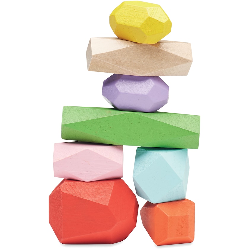 8 blocs de construction colorés en bois. Les blocs de construction ont des formes uniques, qui créent un vrai challenge. Livrés dans un sac en coton couleur nature. La personnalisation est réalisée sur le sac en coton.