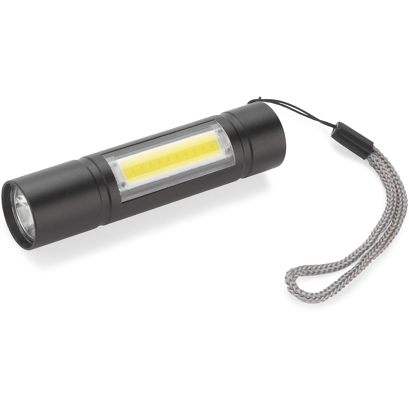 Lampe de poche haut de gamme avec trois types d'éclairage. La Balfour propose un éclairage fixe, un éclairage clignotant ainsi qu'un éclairage COB ultra puissant dans sa poignée. La lampe de poche est en métal, avec batterie rechargeable. La personnalisation est réalisée par gravure laser.