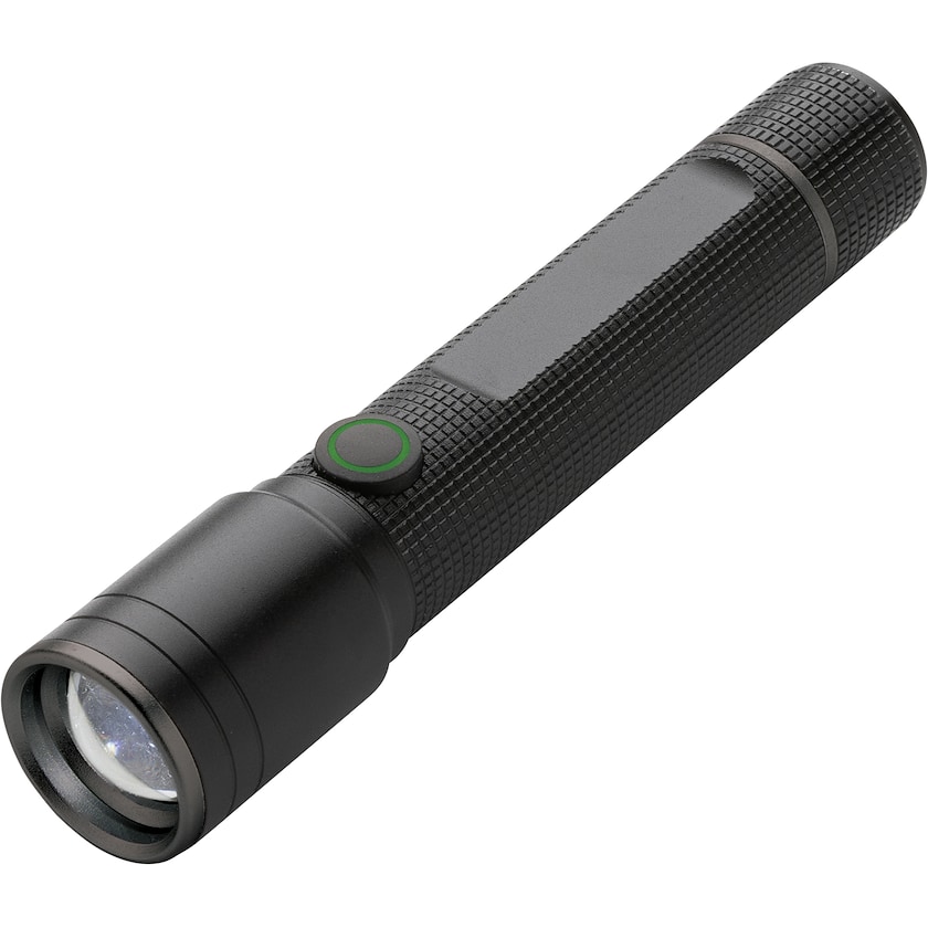 Lampe de poche compacte et très fonctionnelle de haute qualité. La lampe de poche se recharge via une prise USB, a une luminosité de 100 lumens et un faisceau qui porte à 100 mètres. Elle est fabriquée en aluminium recyclé. La torche est certifiée IP4, ce qui signifie qu'elle peut facilement résister à une utilisation en extérieur. La lampe dispose de cinq modes différents.