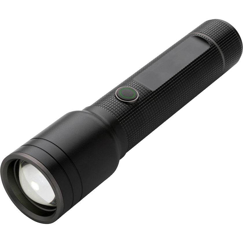 Lampe de poche compacte en aluminium recyclé. Crox est rechargeable et dure 10 heures avec une seule charge. Le chargement s'effectue à l'aide d'un câble USB. La lampe de poche a une lumière très puissante qui porte jusqu'à 800 mètres.