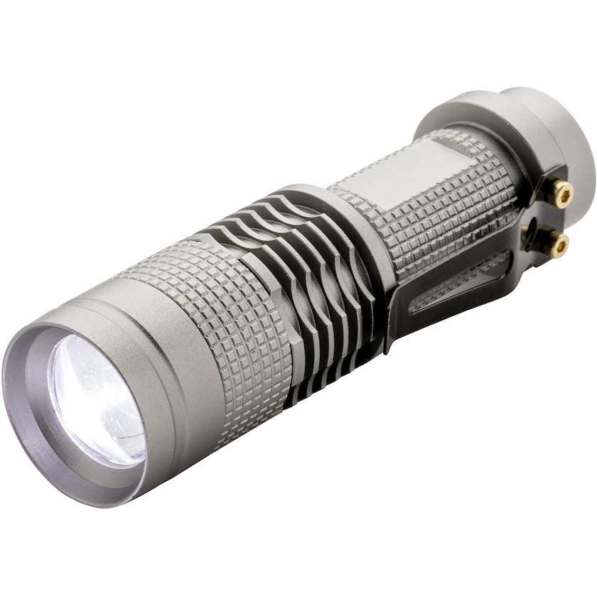 Lampe de poche compacte, mais très puissante. La LED est de type Cree et possède un éclairage très puissant. Piles incluses.