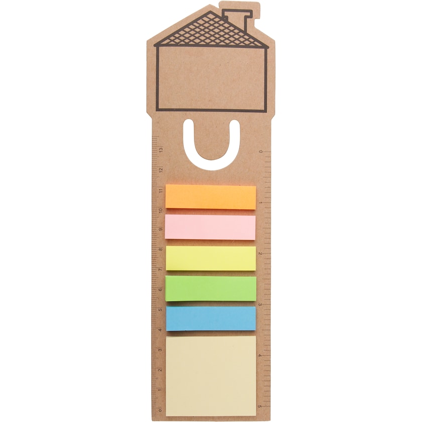 Languettes adhésives avec règle en carton et motif en forme de maison. Ce produit rigolo contient des languettes adhésives colorées et un bloc-note. Parfait pour tous ceux qui travaillent dans l'immobilier!