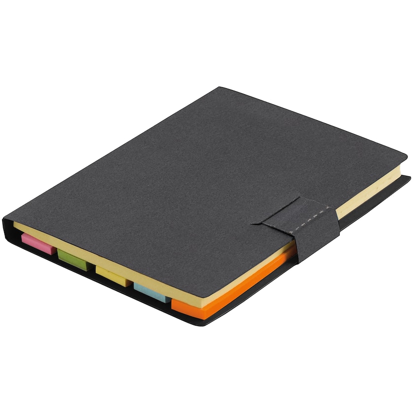 Set de languettes adhésives avec bloc de feuillets adhésifs. Les languettes adhésives et les deux bloc-notes comportent respectivement 25 unités. L'intérieur du set noir est noir, tandis que celui du set couleur nature et bleu est blanc.