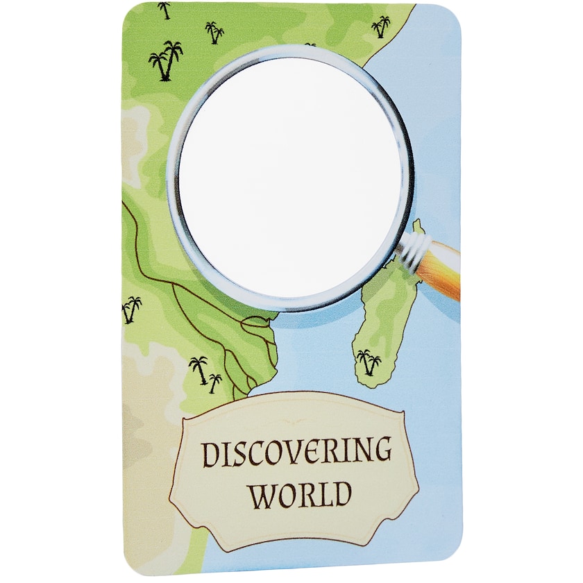 Loupe au format carte de crédit avec impression photo 4 couleurs sur toute la face avant. Vous décidez de l'emplacement du verre et de sa taille. Parfaite pour être rangée dans un portefeuille. La loupe possède un facteur de grossissement de 3. Livré sous emballage individuel en polybag.