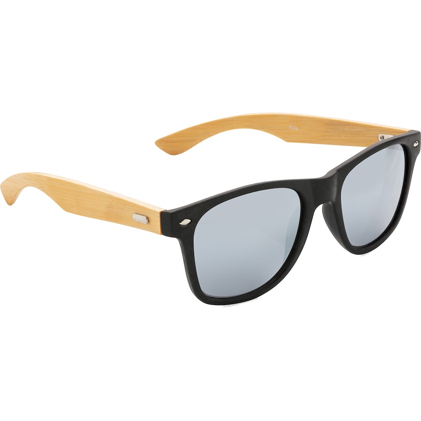 Lunettes de soleil écologiques personnalisées. Les lunettes de soleil sont fabriquées en bambou certifié FCS et en plastique recyclé certifié RCS. Les verres sont conformes à la norme EN ISO 12312-1, UV 400 et CAT 3.