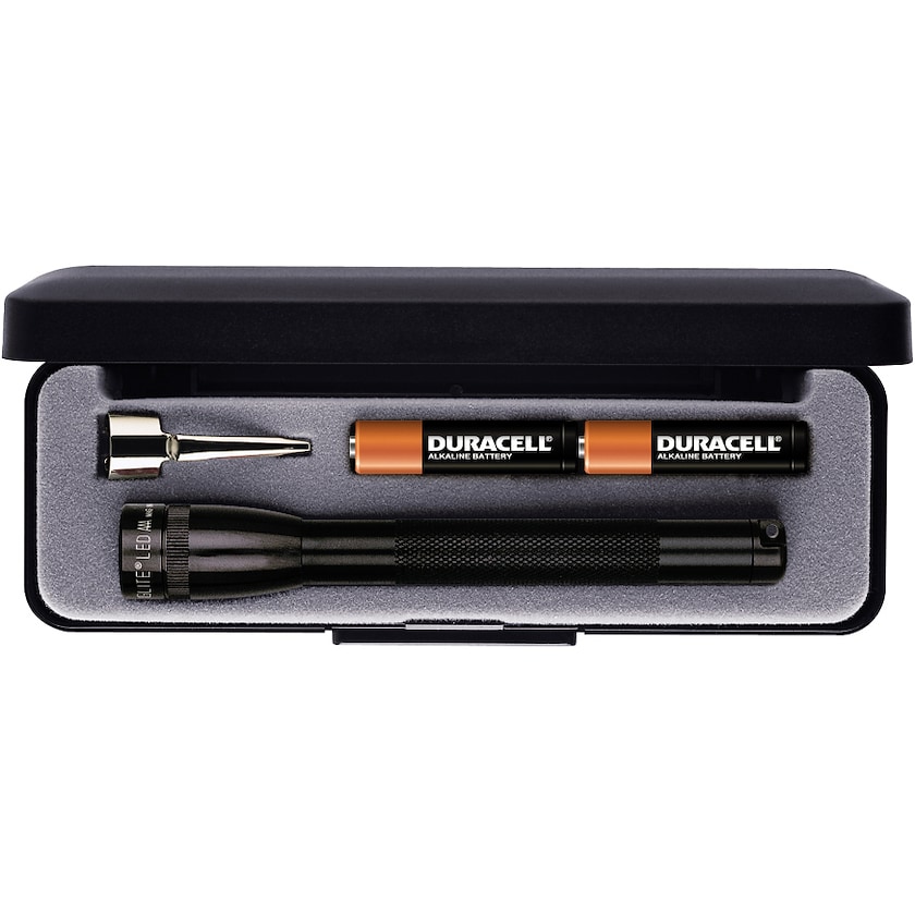 La lampe de poche Minimag classique. Livrée dans une boîte cadeau avec batteries. La lampe de poche possède une ampoule à incandescence.