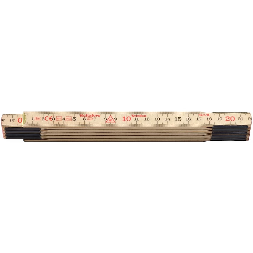 Les classiques Hultafors, un must pour tous les bricoleurs. Fabriqué de façon traditionnel en bouleau pubescent avec articulation en acier suédois, ce qui permet d'obtenir des baguettes fines et un mètre pliant pratique. Gradation métrique en noir des deux côtés avec chiffres décimaux rouges.