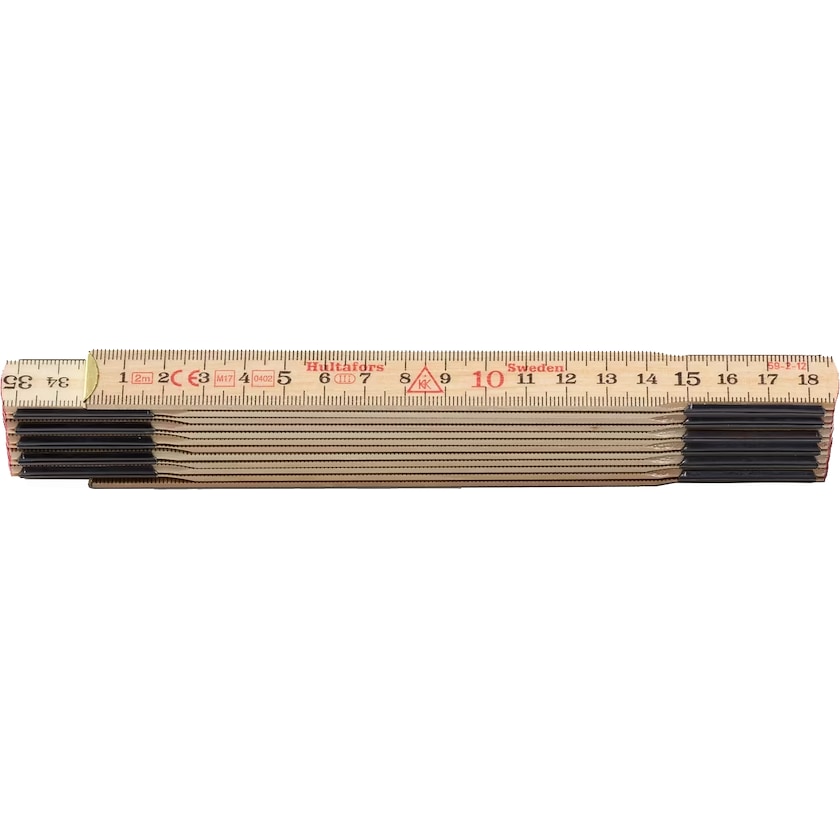 Le classique Hultafors en bouleau pubescent et acier suédois. Ce mètre pliant possède un découpage plus petit que la normale, et il est donc plus facile de le ranger dans sa poche. Gradation métrique en noir avec chiffre des décimètres en rouge des deux côtés.