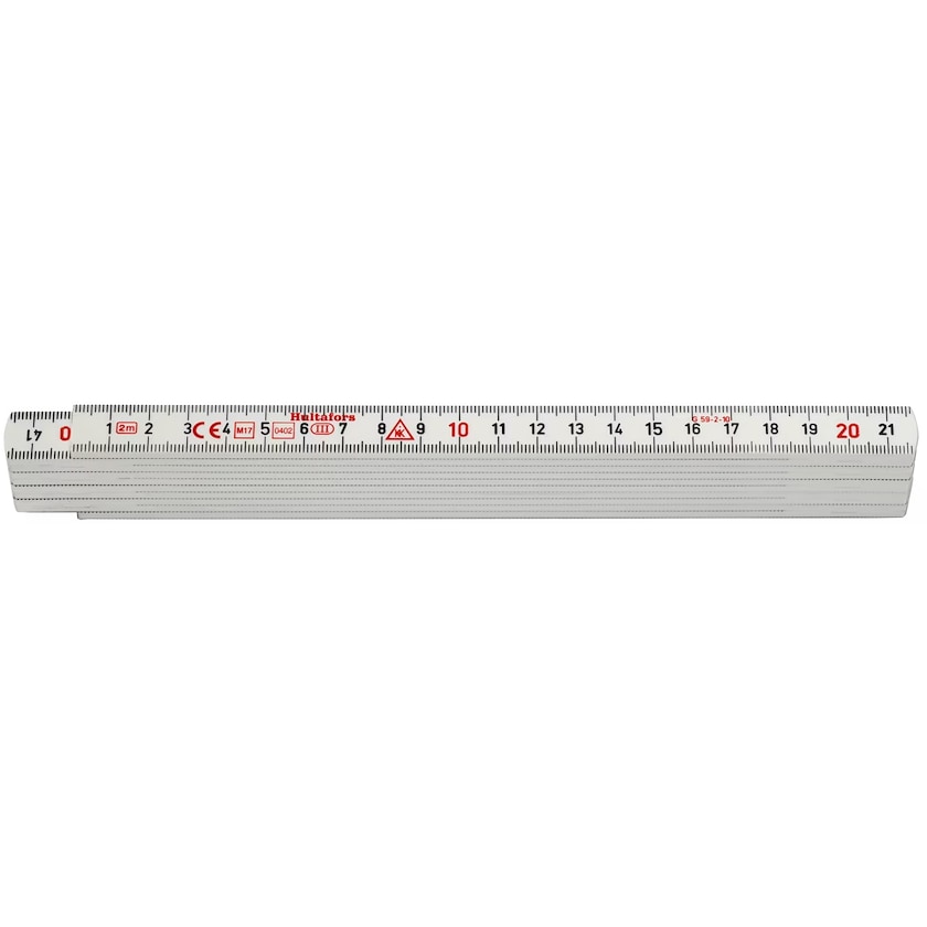 Mètre pliant en polyamide renforcé de fibres de verre. Le matériau possède une excellente résistance à l'humidité. Le mètre pliant a une gradation métrique noire des deux côtés, avec les chiffres des décimètres en rouge. Quantité de commande minimum de 300 unités.