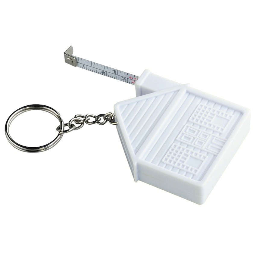 Mètre-ruban fun de 2 mètres en forme de maison. Le marquage est effectué sur la face arrière de la maison.