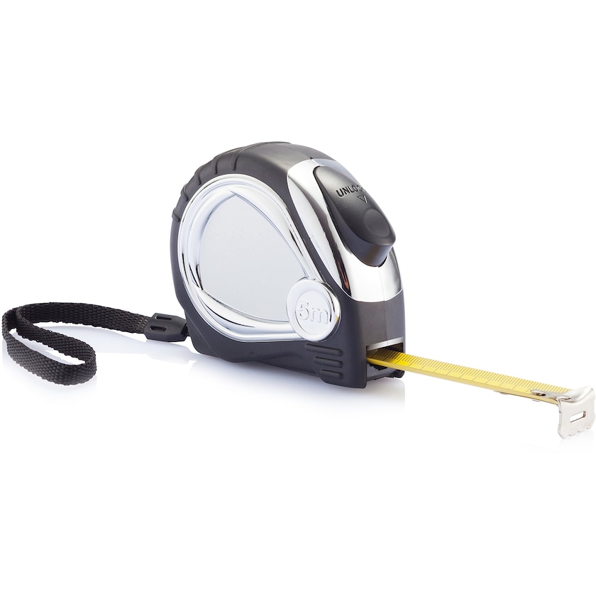 Mètre ruban chromé de 54 mètres d'une qualité supérieure. Le Scala est en plastique avec des détails en caoutchouc, et comporte un coupe-ceinture et un cordon de poignet.
