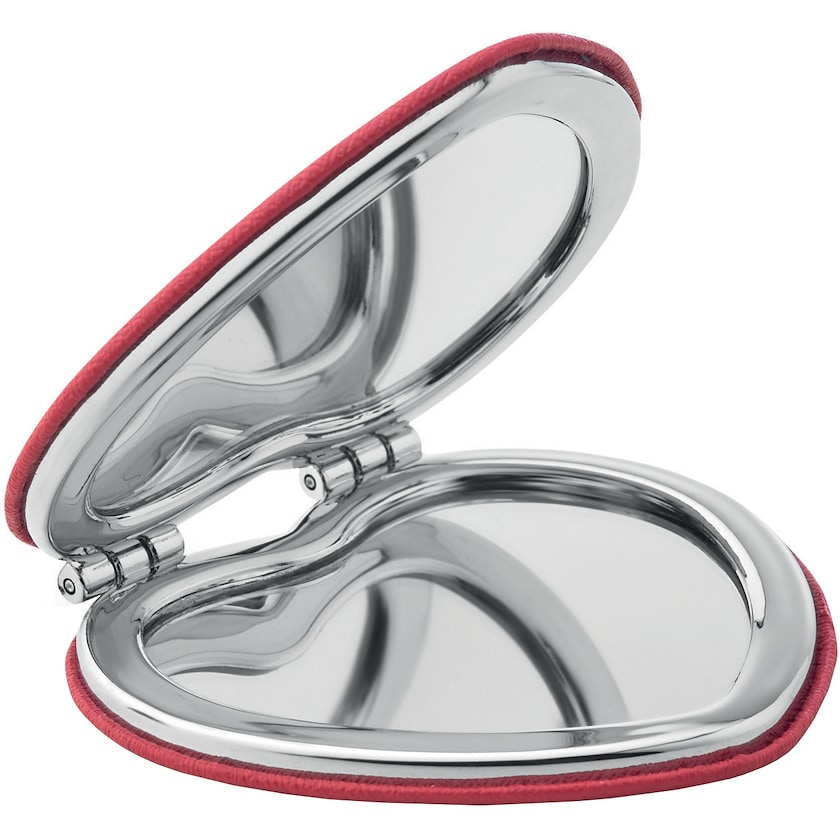 Miroir à maquillage double en forme de cœur. Le Heart possède un élégant revêtement en cuir synthétique et de jolis détails chromés. Commandez vos miroirs à maquillage personnalisés en forme de cœur chez Axon Profil!