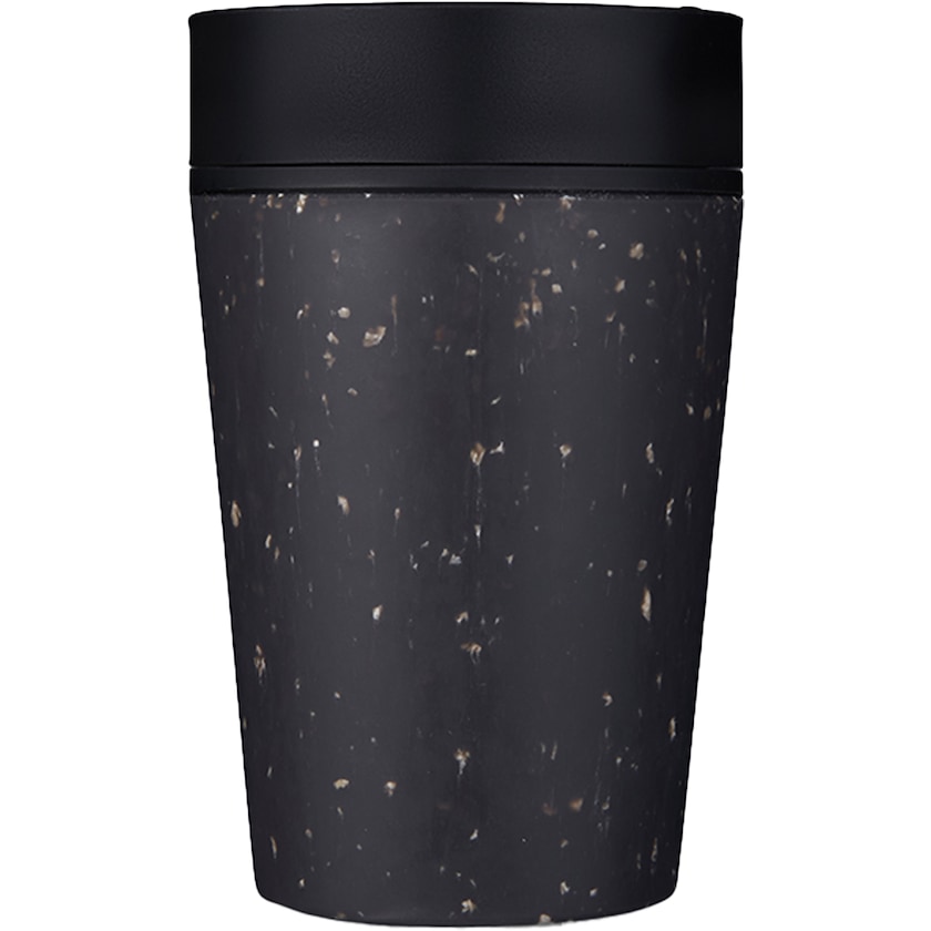 Petit mug de voyage en matériau recyclé. Le mug est à paroi double. La paroi isolante externe est fabriquée à partir de gobelets jetables en carton. La paroi interne et le couvercle sont en polypropylène. 100% hermétique. Le couvercle possède une forme brevetée qui permet de boire depuis n'importe quelle direction.