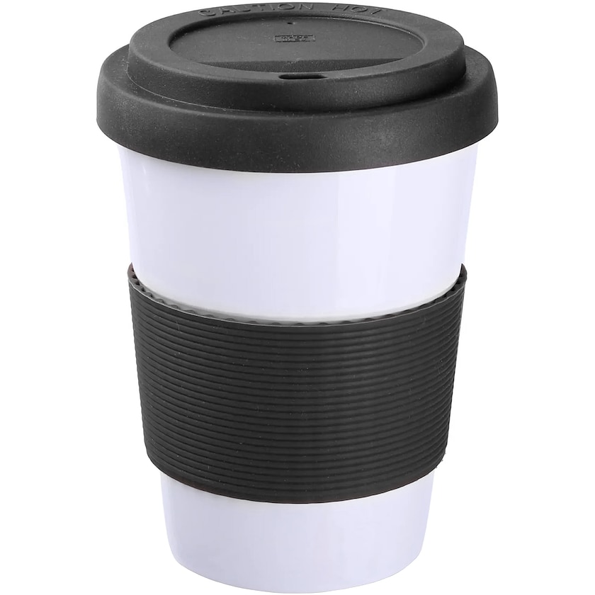 Mug à emporter en porcelaine avec couvercle et anse en silicone. Le Portland Classic est doté de doubles parois, ce qui signifie que votre boisson reste au chaud plus longtemps.