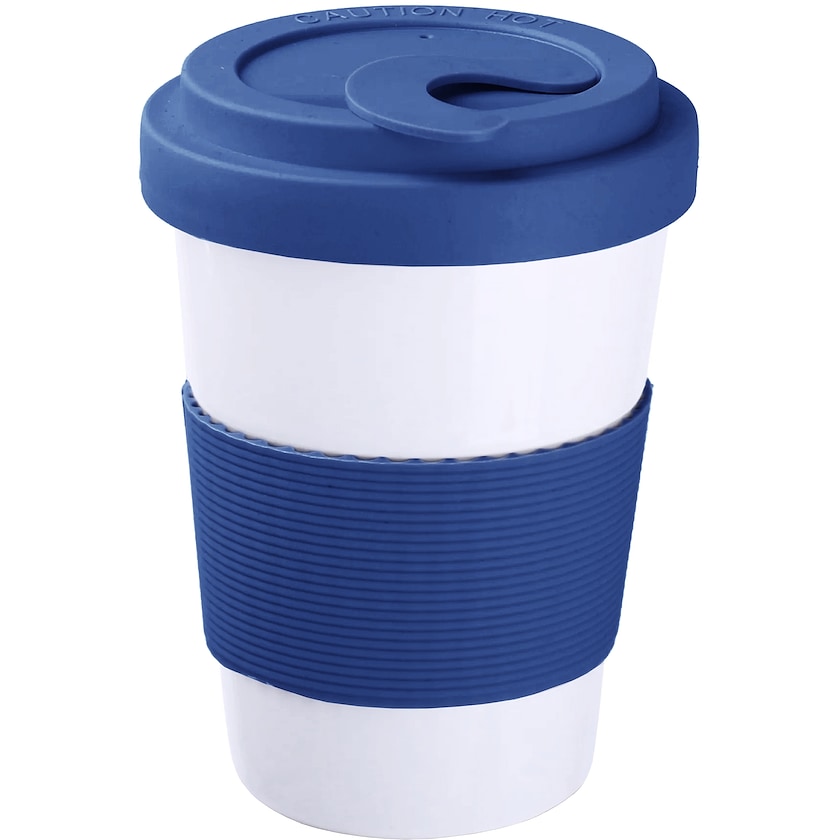 Mug à emporter avec couvercle en silicone avec verrouillage de sécurité. La tasse a une poignée en caoutchouc confortable et des parois doubles. Grâce au verrouillage de sécurité, vous ne risquez pas de renverser des boissons chaudes sur vous-même ou sur les autres.