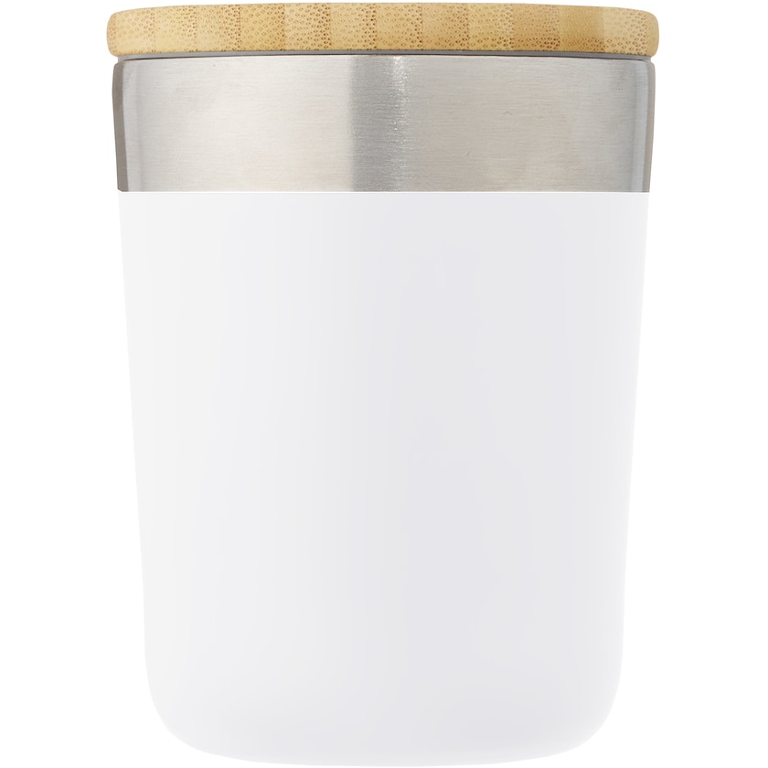 Mug isotherme en cuivre avec couvercle en bambou. Double paroi, le mug permet de maintenir les boissons chaudes ou froides pendant plusieurs heures. Le mug ne contient pas de BPA, et a été et approuvé pour un usage alimentaire suivant la législation allemande. Sa taille convient à la plupart des machines à café. Lavage à la main recommandé.
