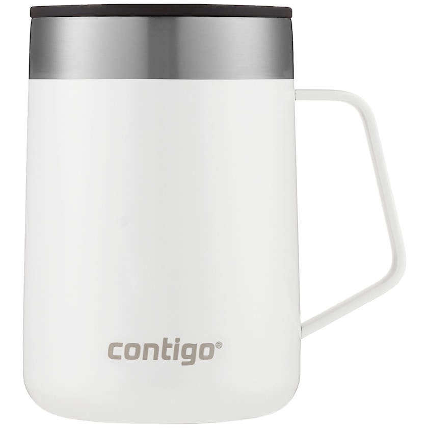 Mug isotherme en acier inoxydable Contigo. Le mug est à isolation sous-vide, et permet de garder les boissons chaudes pendant 5 heures, froides pendant 15 heures. Le couvercle possède une ouverture avec rabat qui permet d'éviter les fuites ou écoulements accidentels. Convient à la plupart des machines à café. Facile à nettoyer. Les instructions d'utilisation sont incluses.