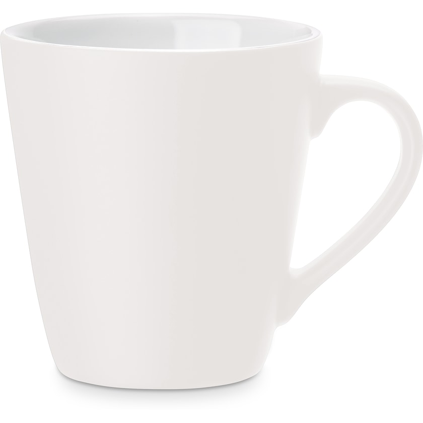Élégant mug, qui reste empilable, avec extérieur mat et intérieur brillant.