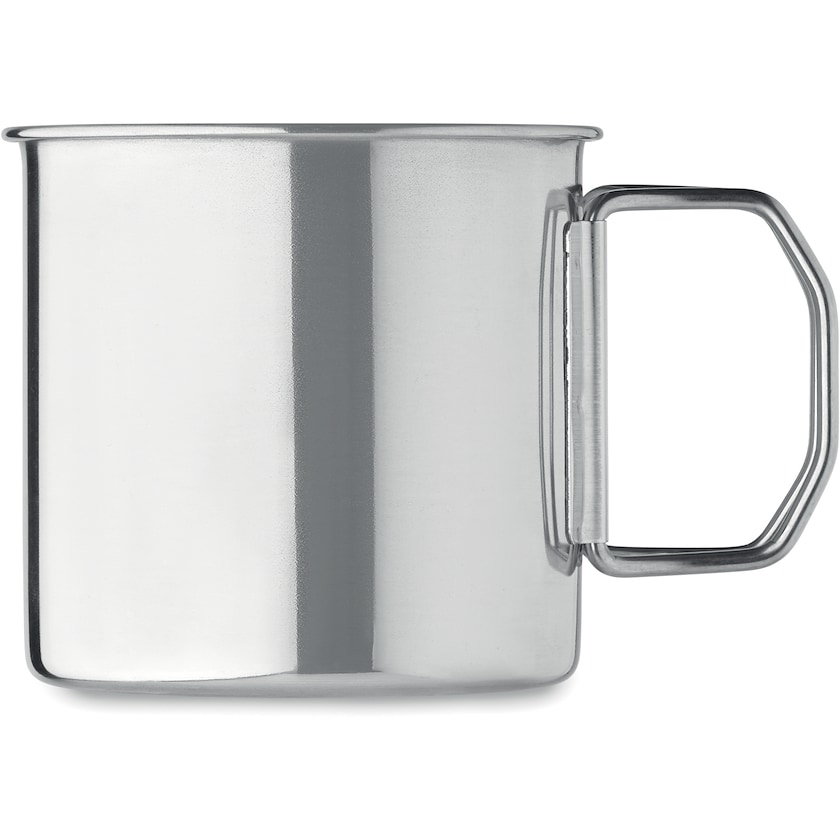 Mug en métal en acier inoxydable avec poignée pliable. Jonestown a des parois simples et contient 33 cl. Le marquage se fait par gravure laser.