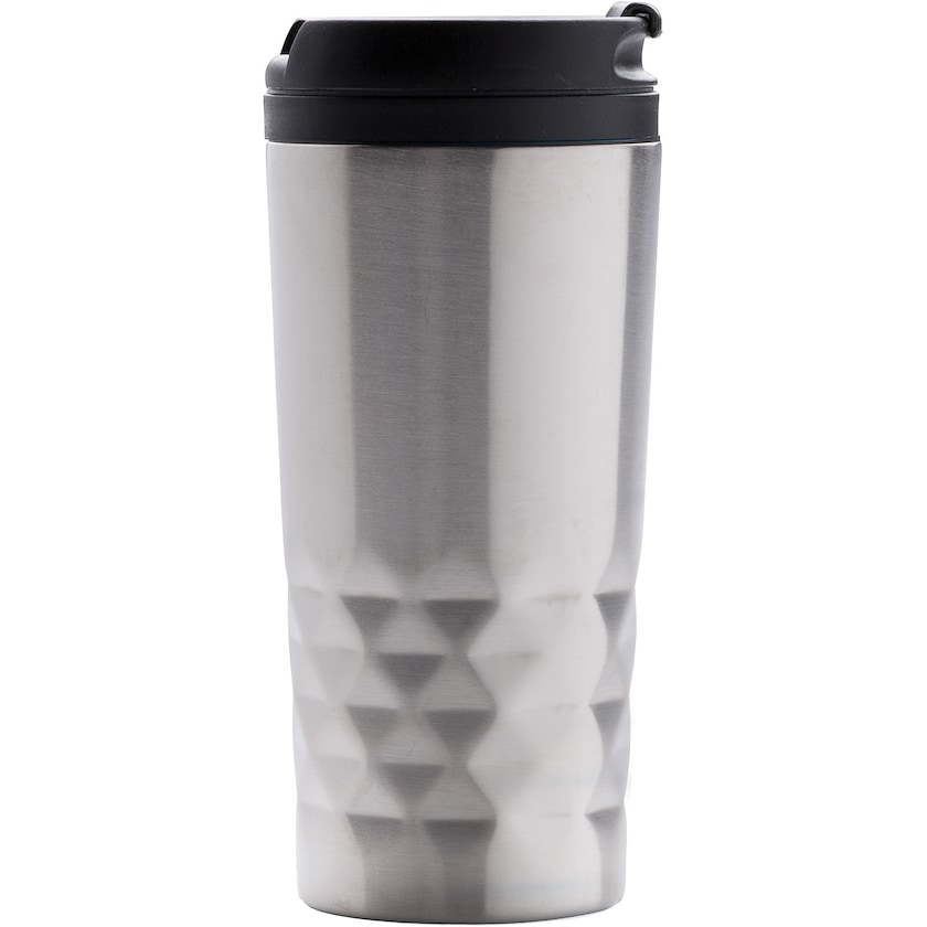 Mug isotherme de 30 cl avec motifs géométriques. Le Xander possède un extérieur en acier inoxydable et un intérieur en plastique. Le mug est hermétique. Lavage main uniquement.