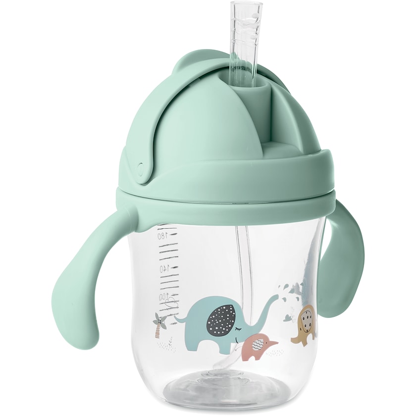 Mug bébé avec imprimé. La tasse est dotée d'un couvercle pratique avec une paille rabattable. Fabriqué en tritan.