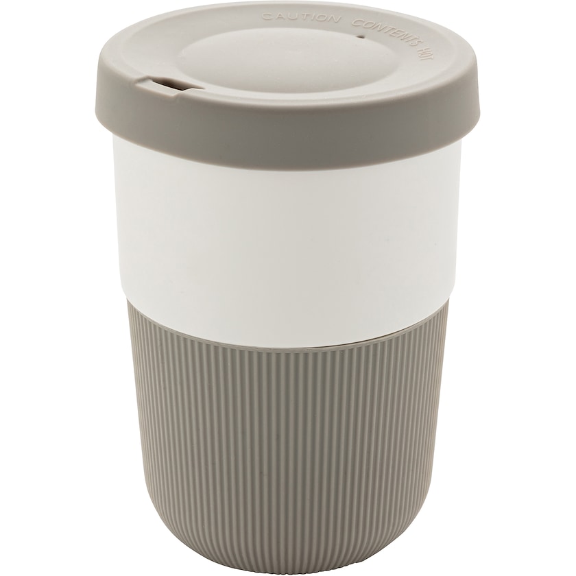 Mug de voyage écologique. Le Saratoga est fabriqué en PLA, abbréviation anglais pour acide polyactique, un matériau naturellement biodégradable. Le mug et sa zone de préhension sont en silicone. Un beau mug doublé d'un bon choix écologique.